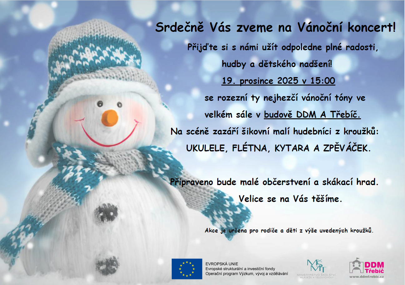 Sraz: 14.45 hod v naší třídě. Začátek koncertu: v 15 hod ve velkém sále.